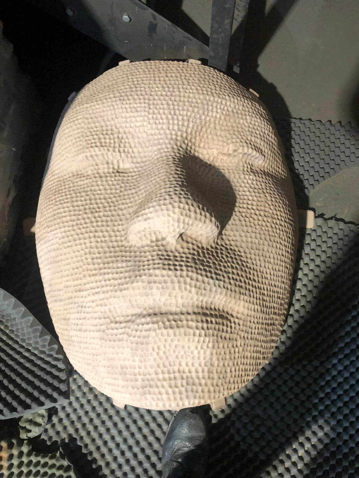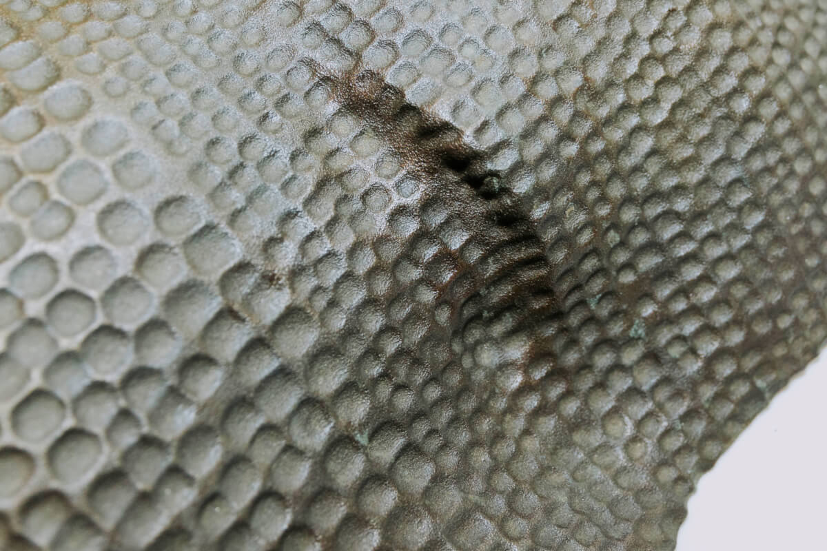 - Complex dimpled finish and numerous undercuts below the eyes, ears and noses.