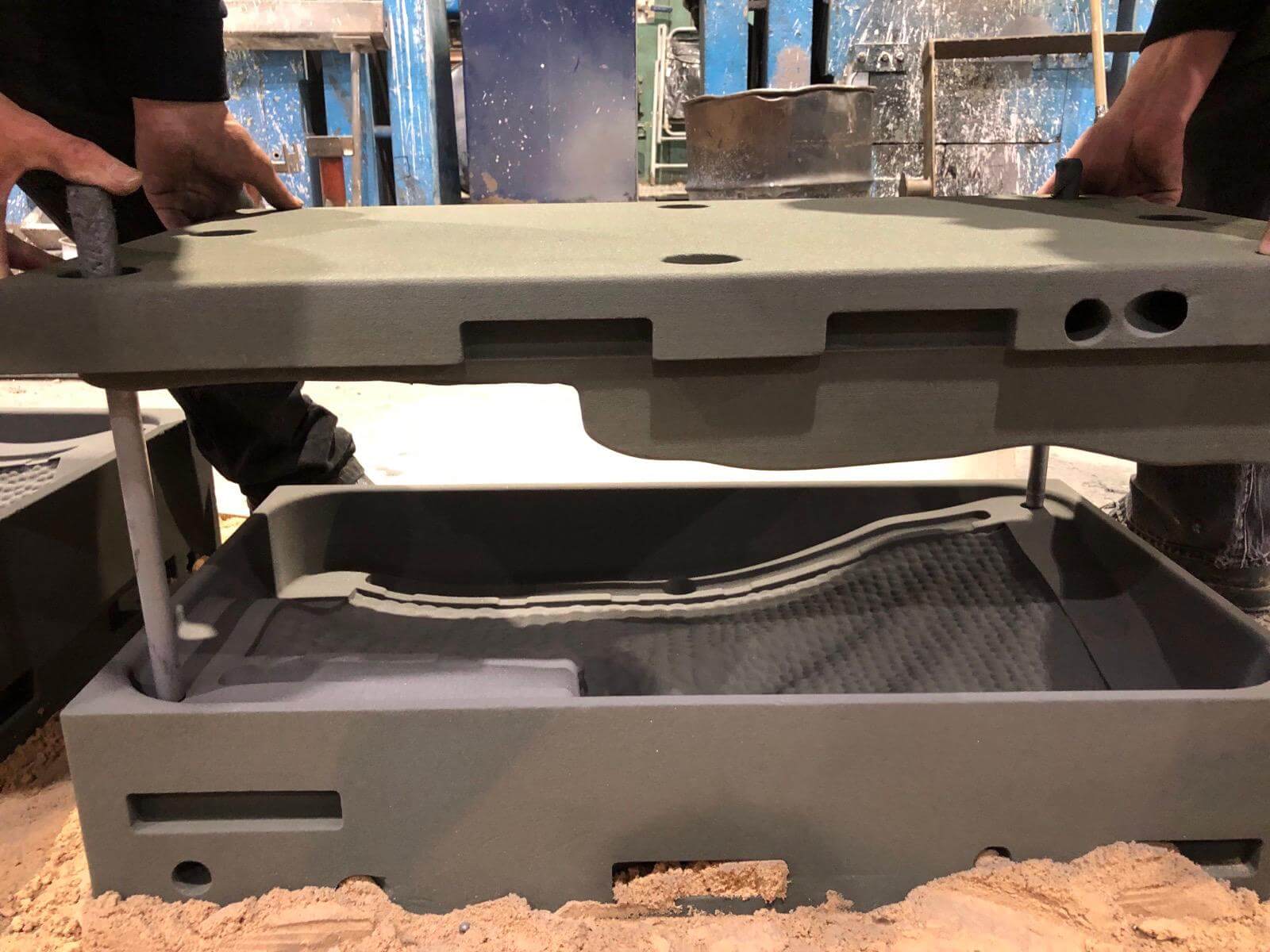 - With traditional patterns and sand castings deemed unviable to achieve the required finish and lost wax castings being dismissed due to the risk of distortion, printed sand moulds were employed.